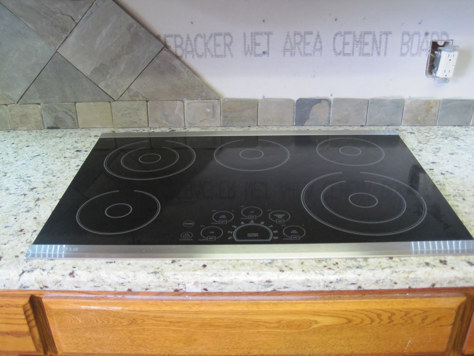 Along with the new counters, we purchased a new LG cook-top for the kitchen. We chose a five heating element cook-top with touch sensor buttons, so cleaning it is super easy! It is gorgeous! We are waiting to update the other appliances until one of them breaks down. They all work pretty good, so we decided just to keep them for now. (But I can’t wait for them to break down!)