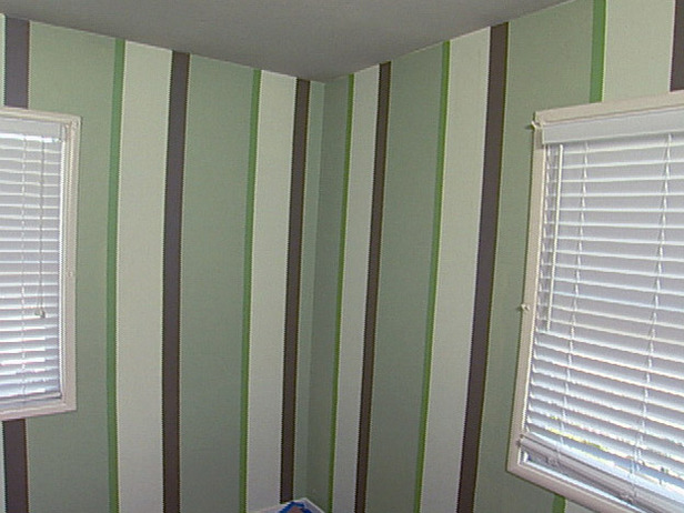 In my vision of the room, the top half of the wall will be painted a light green. The wall would be separated by the golden oak chair rail (which is already in place) and stripes would be on the bottom half of the wall. I haven’t decided to incorporated the color brown in the stripe or just use 3 different shades of green. Here are a couple ideas of the stripes I like:Really I would like the stripes to look something like this below.