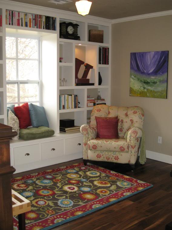 Idea number one, bookshelves! I just think it would be so great to add bookshelves to the sides, above, and below the window seat. It will be functional for storage and also add a finishing touch to the room. Here are a couple of ideas I have found that reflect what I am thinking: