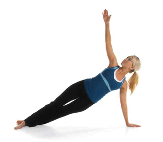 1. Get into a side plank position by lying on your side with extend your arm under shoulder and your feet stacked.