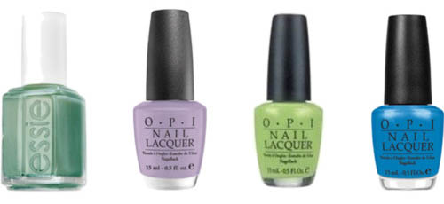 Bright, fresh nail colors are popping up all over and I’m not complaining. It’s definitely refreshing to see so much color and creativity on nails after the reign of black nails (not to say I won’t be rocking some dark nails again come fall!). I know it can seem like a bit much but what’s the harm in trying it? You may apply a couple coats of a calm lavender color and find yourself pleasantly surprised. I’m currently wearing Essie’s Turquoise & Caicos and find myself thinking the water there must be just this shade of blue-green. (left to right: Essie “Turquoise and Caicos,” OPI “Done Out In Deco,” OPI “Gargantuan Green Grape,” and OPI “Ogre-the-Top Blue”)