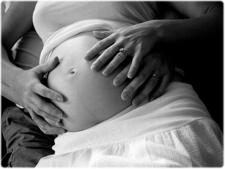 My hubby and I with our hands on my belly