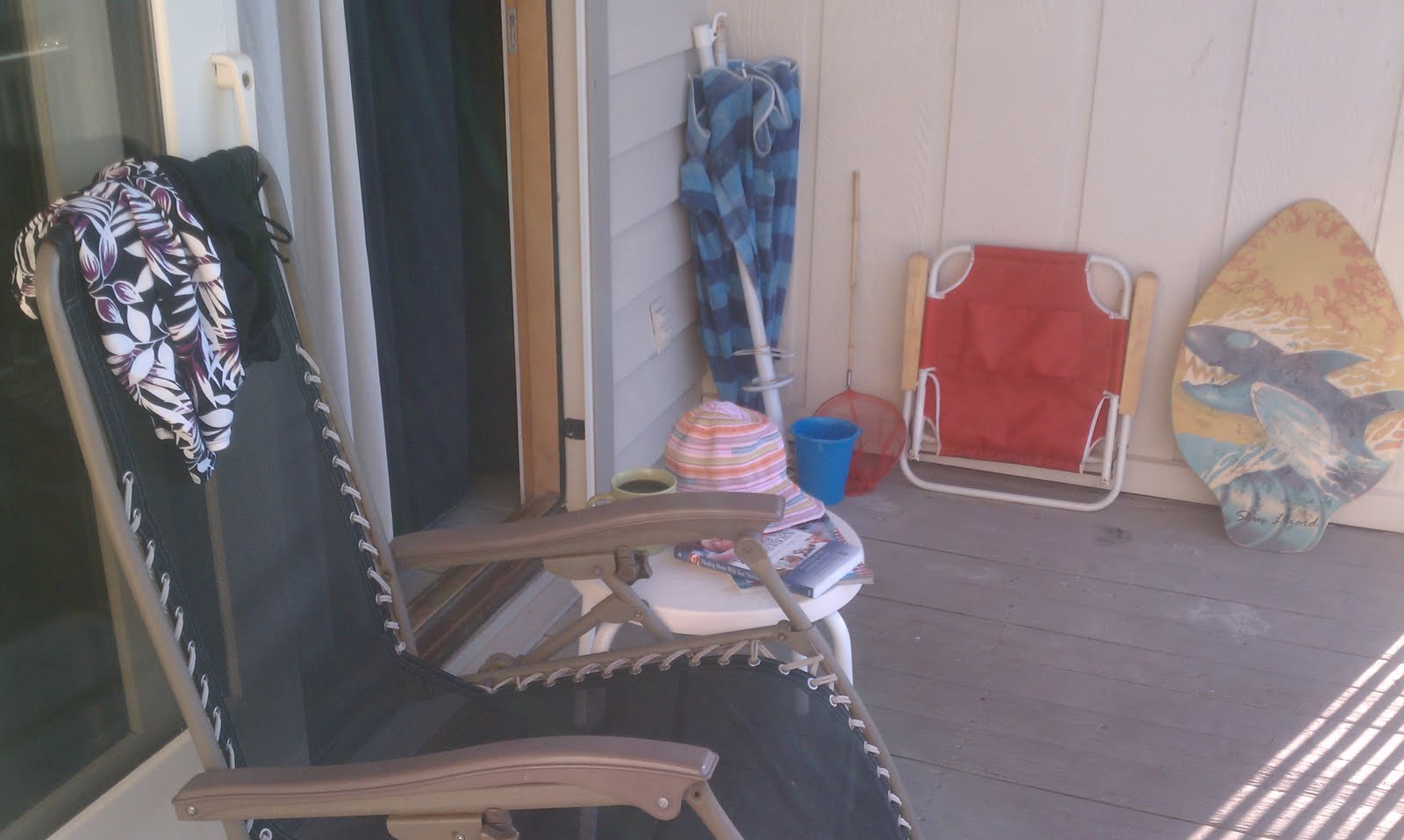 We are making the most of this time together. We have this nice little deck we have made our morning nest.