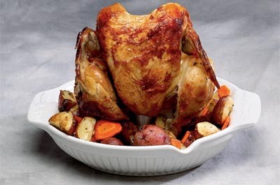 6. To serve, carve the chicken into pieces. Serve hot with roasted veggies.