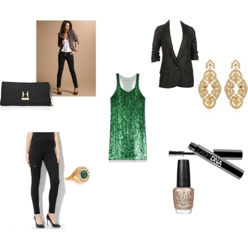For this outfit I wanted to convey the sophisticated and fun look a blazer can provide. The photos below are a great example of the look I initially imagined in my head. Scrunched sleeves and a fitted blazer add a chic touch to just about any outfit. Try pairing a blazer with a sequin tank for a glitzy holiday look. Sequins are everywhere right now; please do not pay $50 for a sequin tank top when you can get it for $15 at Charlotte Russe or Forever 21! Add some skinny black pants and with black pumps and you’re set. As usual I like to finish of the look with earrings, a ring, and classic clutch. If you view nail polish as the cherry on top then try OPI’s Glitzerland. It has the same sparkle as Ali’s Big Break without looking over the top.