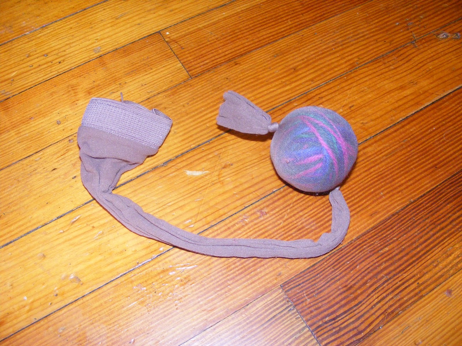 Step 2: You need to “felt” the ball. Felting is the process of compressing the fibers. To do this, you need to put the ball in a nylon stocking and tie it tightly around the end.