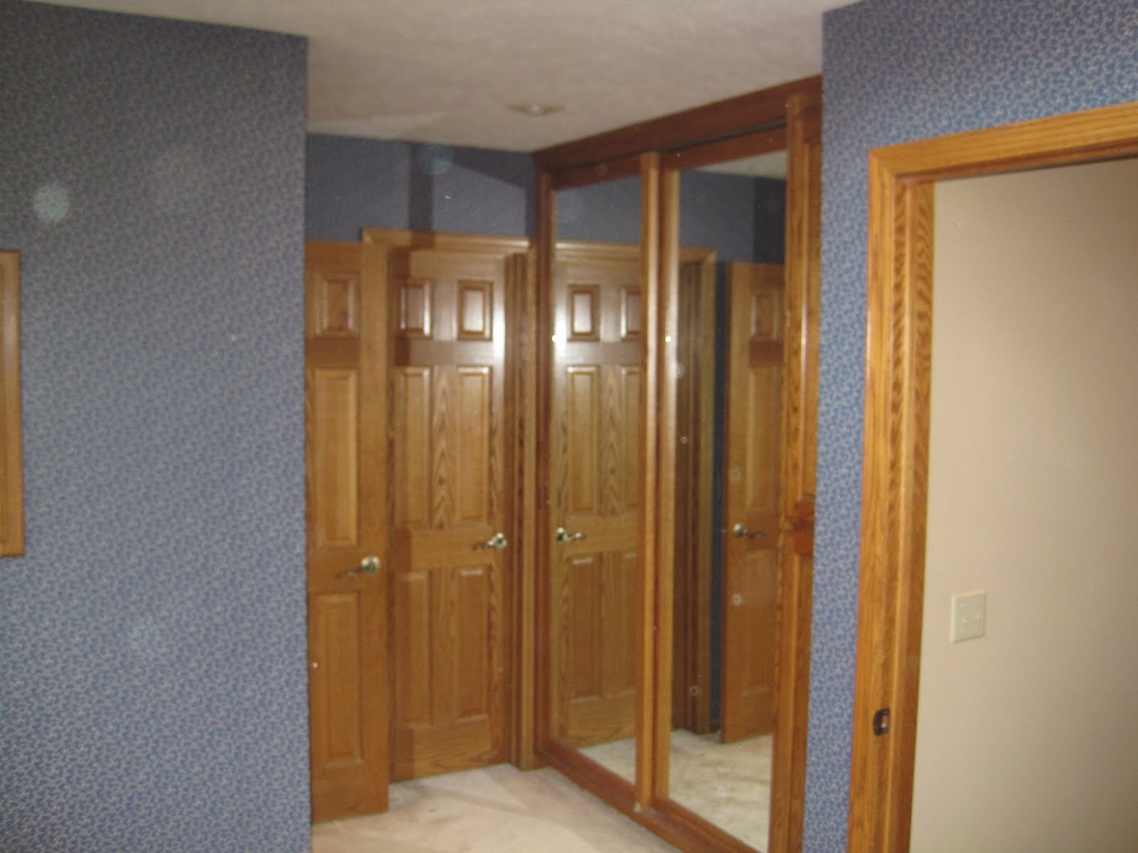 Lots of lovely blue wallpaper. There is a shower area, opposite of the closet doors, but I didn’t take pictures of it.