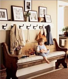 Which has been so helpful, but in my current entryway I already have a large chest that serves as a bench and toy box. I wanted something somewhat quick and I have had some ideas in mind. Here are a few examples I found of how I would like to remodel my entryway: