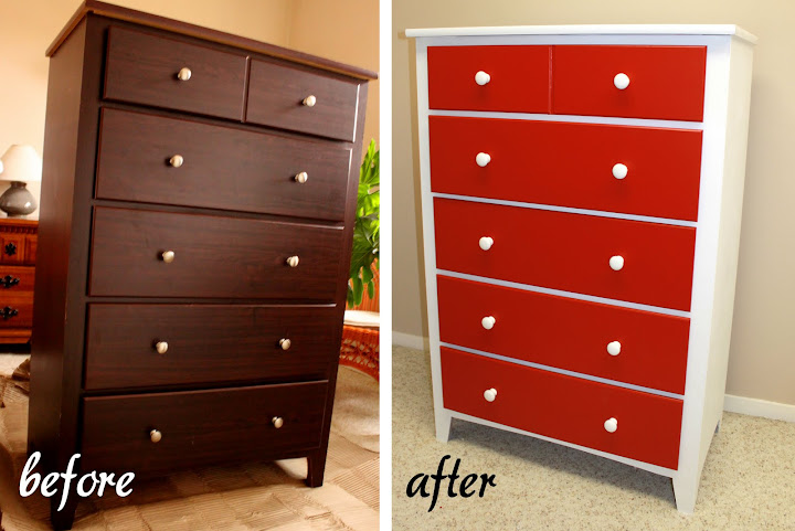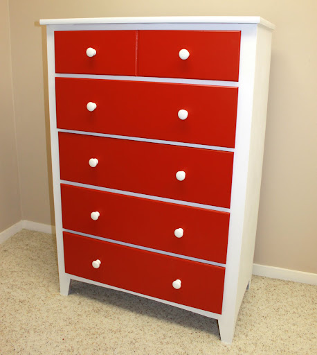 So as I said, the idea was originally to paint the entire dresser red. After painting on the side of the dresser, I decided all red was going to be WAY too much for this room!