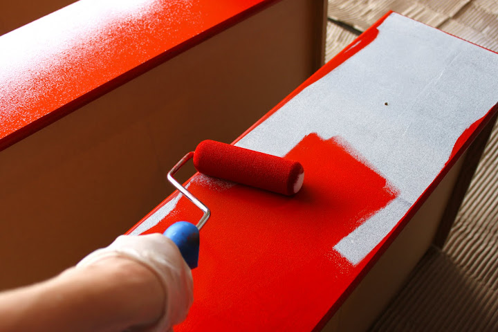I originally had this grand idea to paint the entire dresser Fire Engine Red. I set out to purchase a gallon of red paint and walked up to the counter at Lowes to have them mix it up. I always like to browse the “Ooops” paint containers for any colors worth buying when lo and behold, they had a Valspar Signature Paint gallon in Fire Engine Red for only $10!! That never happens to me! I quickly yelled to the paint lady to stop with my paint, seconds before she opened the new can, and snatched the “Ooops” gallon up! What a steal, I saved $22 on this paint!