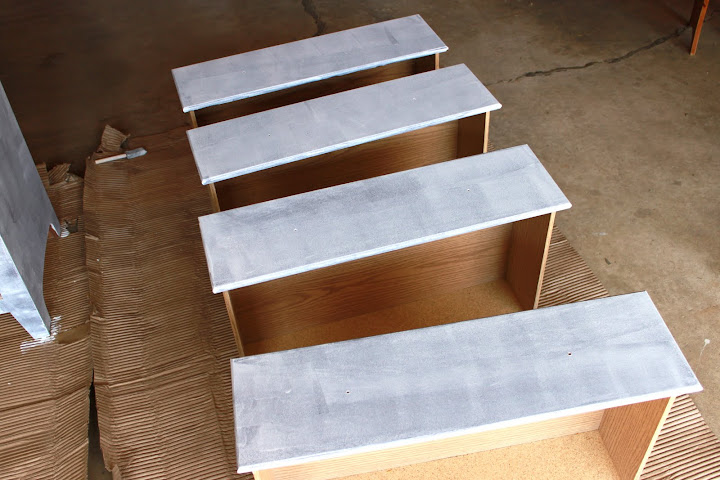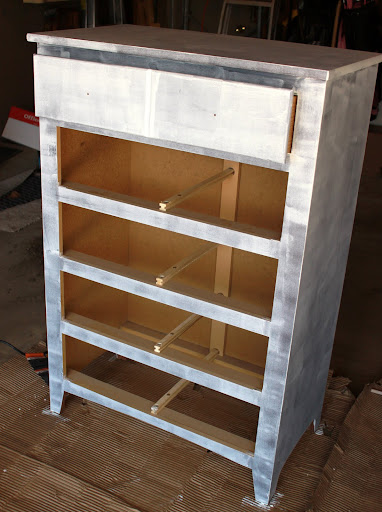 Using a foam roller, I applied the cover stain to the dresser. I was very impressed with the way it blocked out the previous laminate color.