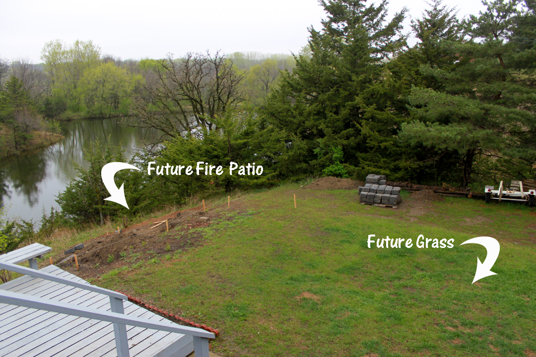 In addition to planting the garden, I am in the process of trying to save/restore our grass. When we purchased this house, we had basically all weeds. After two rounds of broad leaf spray, we are down to just dirt and a little grass. I lovingly spread out some grass seed and raked it into the ground, hoping to have some thicker grass by summer. (My husband’s project has been to build us a Fire Patio. Basically a really nice fire pit surrounded by a brick patio. Hopefully he will write a blog for me about it.)