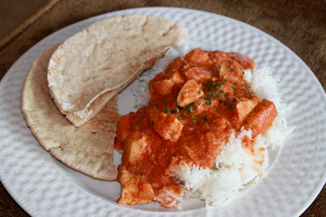 I was inspired to make this for dinner tonight from my cousin’s facebook post. Sometimes you forget how good Indian food is!! I originally found this Butter Chicken recipe from foodnetwork.com, but I thought it might turn out to be too tomatoey tasting, so of course I adapted it to my liking!