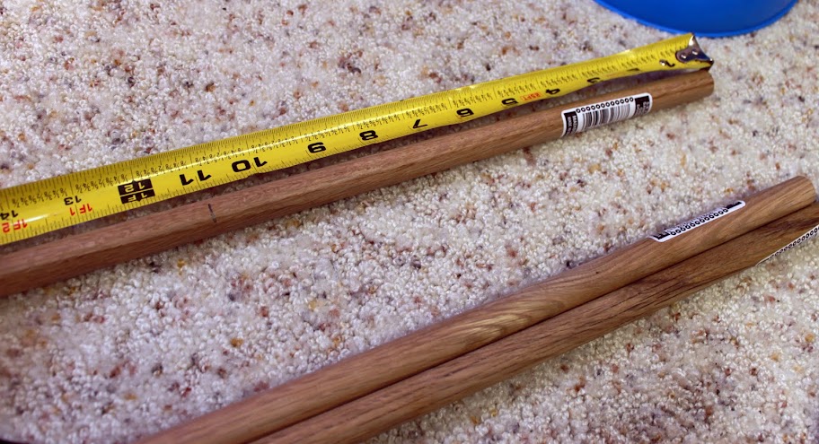 Measure you cut line and then cut the dowels down to size. (I used our miter saw but a hand saw would work too.)