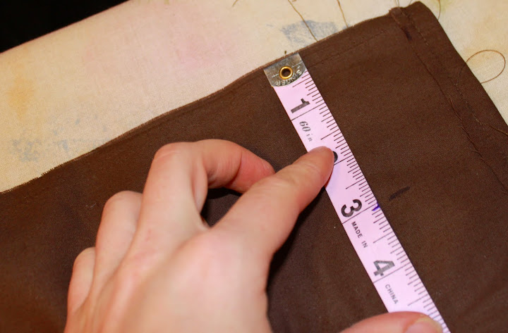 Measure were the pole pocket should end and mark it. I had 3″ pole pockets for a 3/4″ wooden dowel.