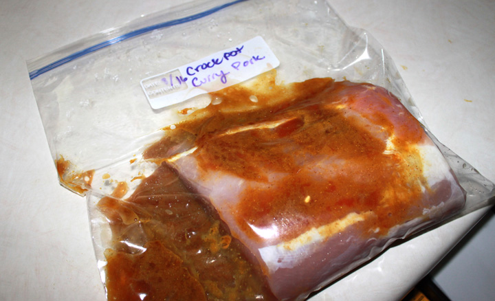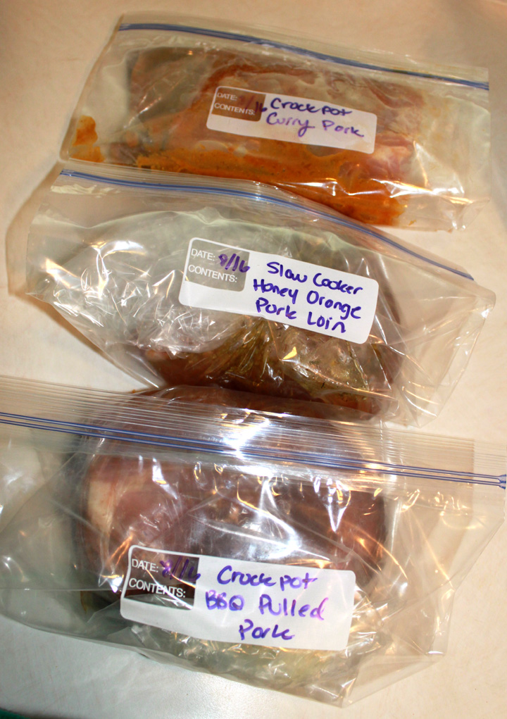 I have been at it again, slowly but surely making some meals for when baby 2.0 arrives. I honestly am not much of a pork eatin’ kind of girl, but when I saw boneless pork loin on sale at my local grocery store for super cheap ($1.99/lb) I decided to turn it into some crockpot meals for the deep freezer. They only offered the pork loin in huge packages, so I threw an 8 pound chunk of the meat into my cart and made my way up to the checkout.