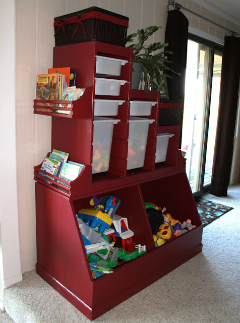 If you recall in my last few blogs, I have been looking for a way to add more toy storage to our house. I originally built this open bookshelf, but it has proven to not be enough storage needed for all the toys we have accumulated over the last almost 2 years.