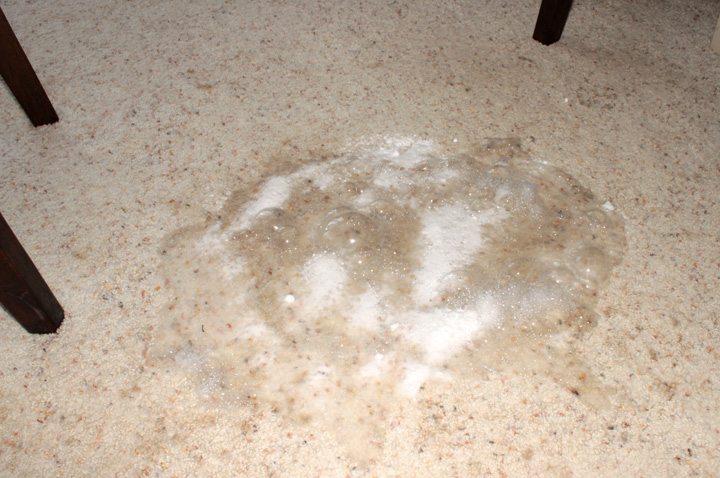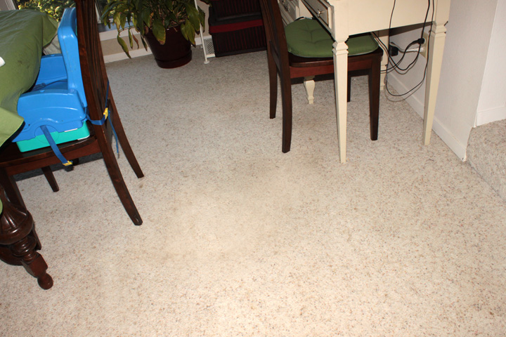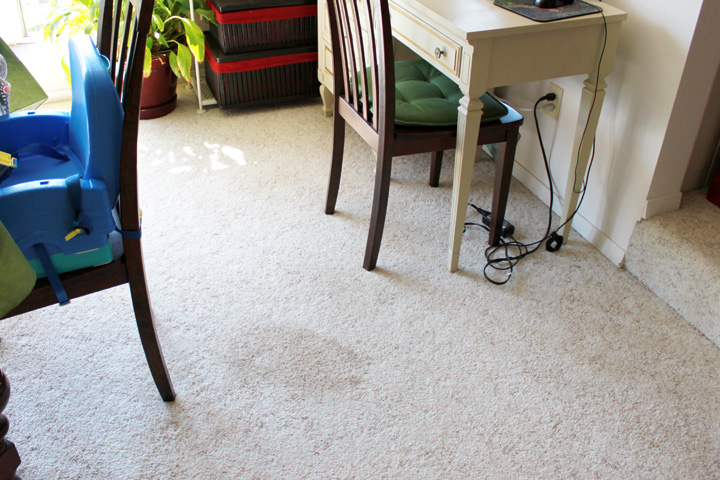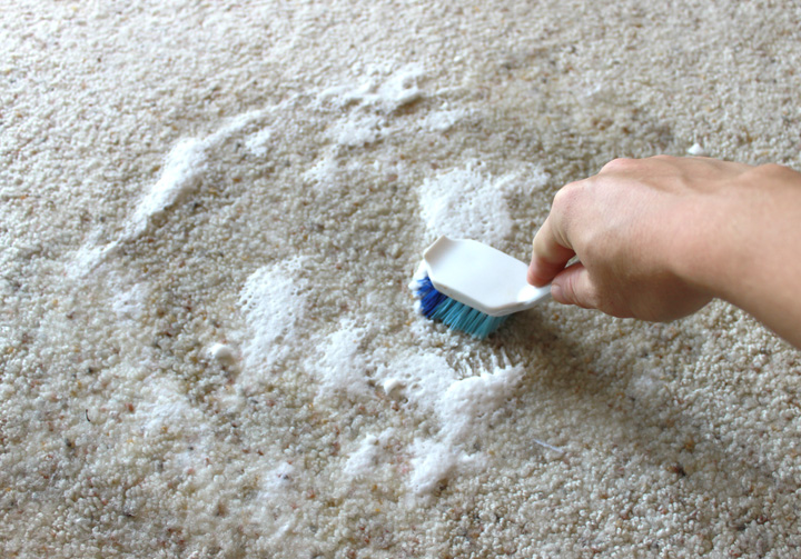 And then I scrubbed it in with a brush. (I alternated with my son, who finds scrubbing stains out of carpet super fun.)