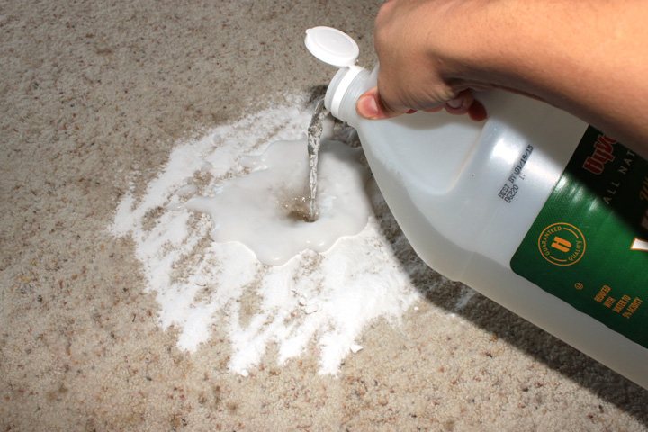 After letting it dry, vacuum up the remaining baking soda. And the stain is MAGICALLY gone!!