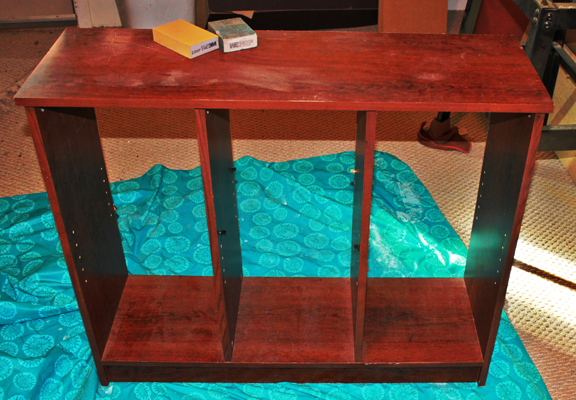 With that said, I was organizing my downstairs storage room and purchased some new heavy duty storage shelves. I was left with this sad old bookshelf in which I had no use. My husband always hated this bookshelf, but it was pretty sturdy and a great height so I always seemed to find a good use for it.