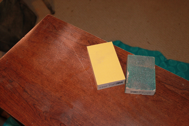 I started out by sanding down the scratches that were on the bookshelf. First with a 60 grit then a 200 grit sanding block.