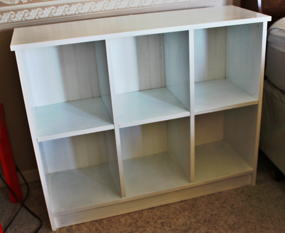 It was it’s time to go…or was it? I was in need of some toy storage in my toy room/guest bedroom in the basement. (This poor room has so many names, but best to be called the ‘room of chaos’ or the second toy room so Mommy can workout without kids getting under her feet but also doubles as the guest bedroom once in a while.) The bookshelf might be just what I need to organize the toys in this room.