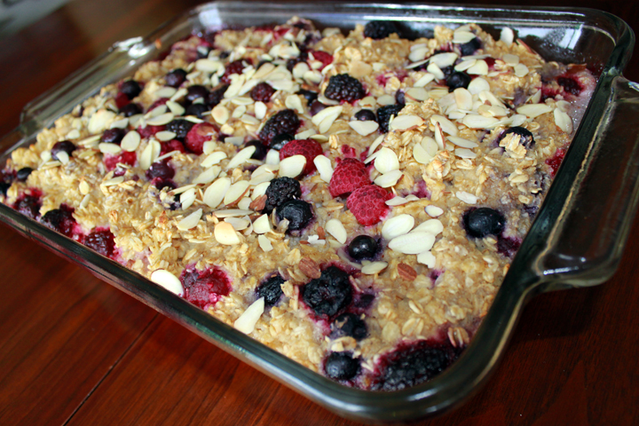 - The next day, top oatmeal with almonds and bake at 350 degrees for 35 minutes.