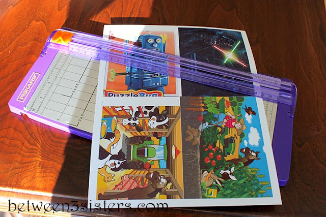 Next, I took all of the puzzle boxes and scanned the image. (You could just cut the box instead, but I wanted it to be more uniform.)